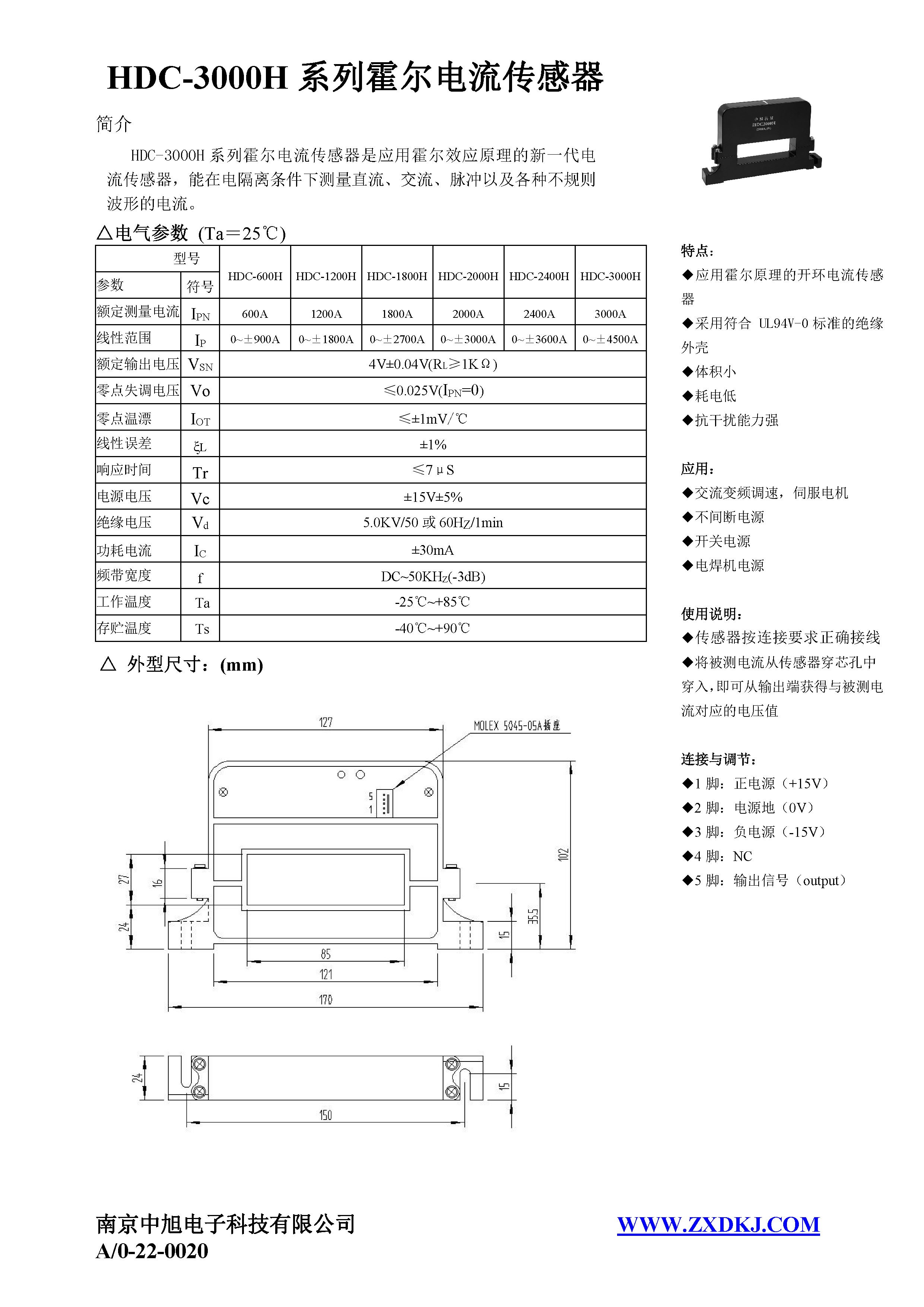 HDC-2000H系列霍爾電流傳感器是應(yīng)用霍爾效應(yīng)原理的新一代電流傳感器,能在電隔離條件下測(cè)量直流、交流、脈沖以及各種不規(guī)則波形的電流。